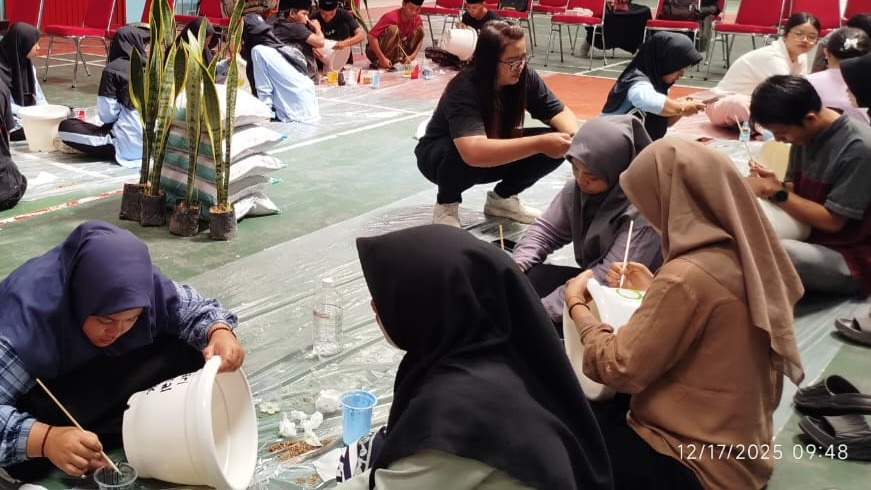 Aksi kreatif dan edukatif dalam kegiatan ini diwujudkan melalui pembuatan dan penghiasan pot bunga dari bahan air mineral bekas serta penanaman bunga sansevieria. Kegiatan tersebut menjadi simbol kepedulian bersama terhadap kelestarian lingkungan sekaligus implementasi nilai ekoteologi, yakni ajaran keagamaan yang mendorong cinta dan tanggung jawab manusia terhadap alam.