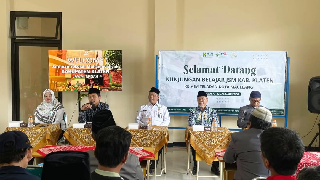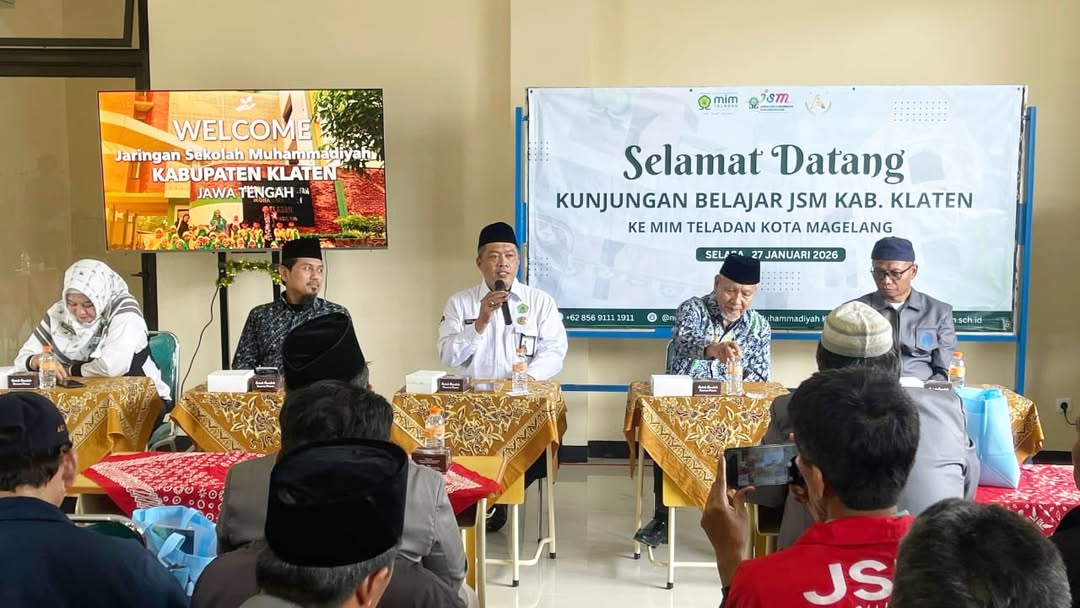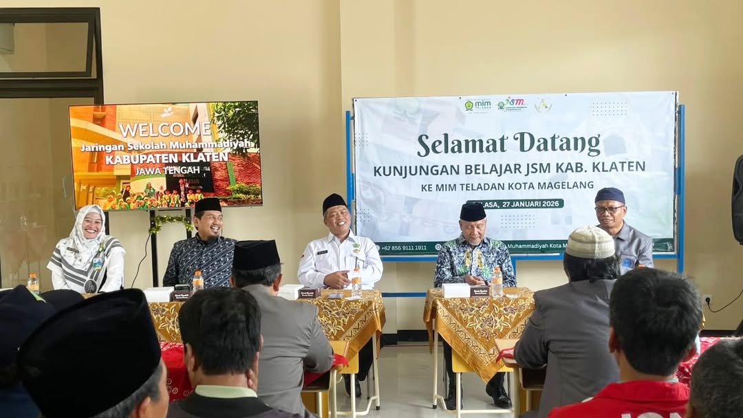 Kota Magelang (Humas) – Madrasah Ibtidaiyah Muhammadiyah (MIM) Teladan Kota Magelang menerima kunjungan belajar dari jajaran pengurus Jaringan Sekolah Muhammadiyah (JSM) Kabupaten Klaten, Selasa (27/1/2026). Kunjungan ini bertujuan untuk saling berbagi pengalaman dan praktik baik dalam pengelolaan serta peningkatan mutu pendidikan.