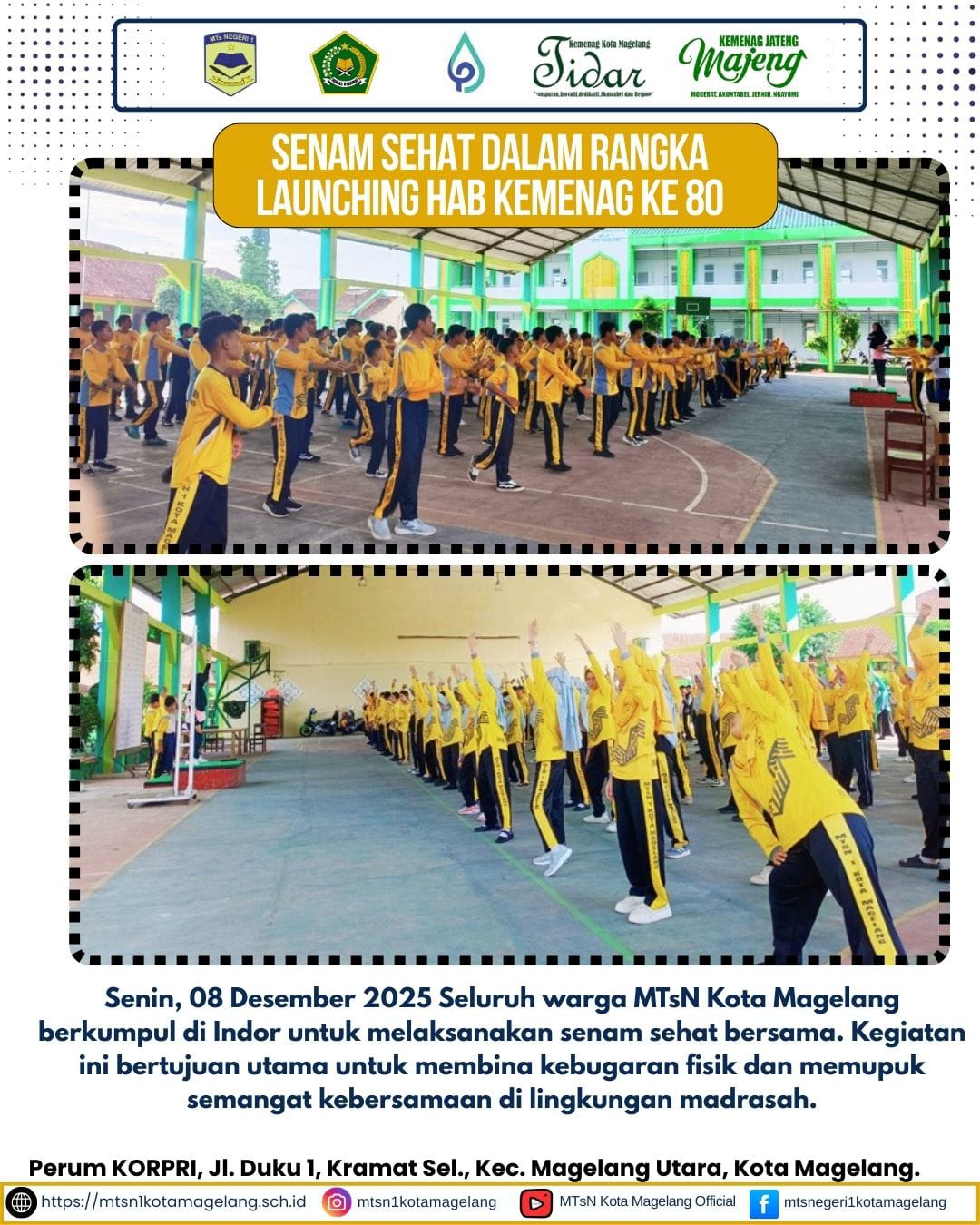 Kota Magelang (Humas) – MTs Negeri 1 Kota Magelang menggelar kegiatan senam sehat dalam rangka menyemarakkan launching Hari Amal Bakti (HAB) Kementerian Agama ke-80.