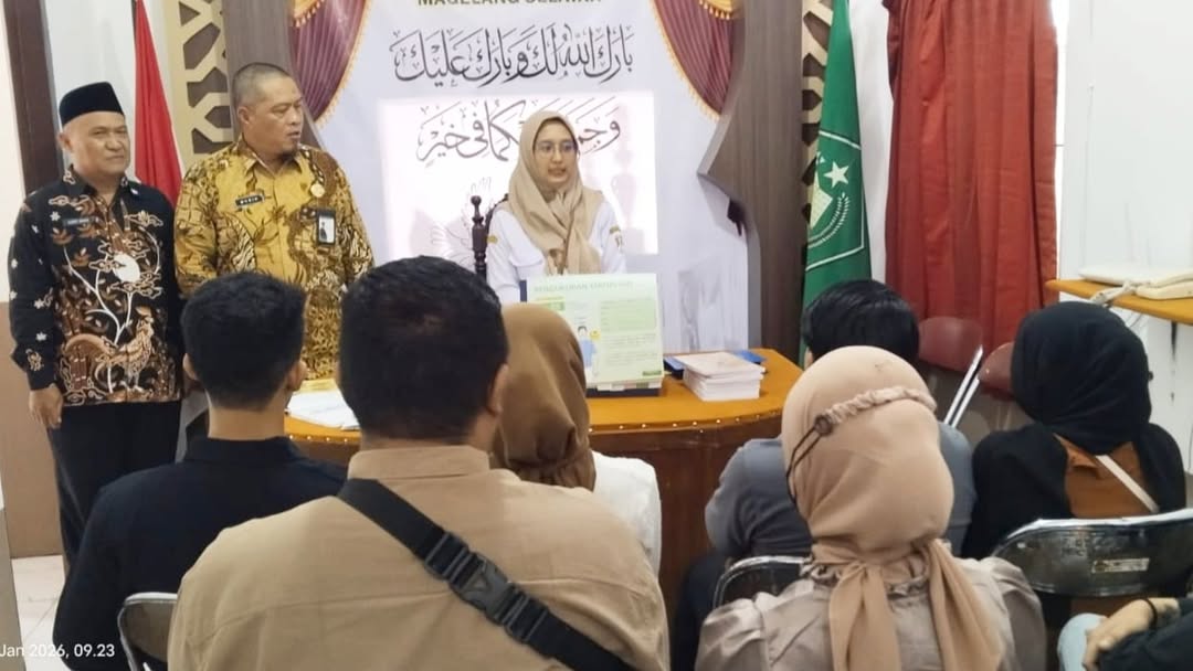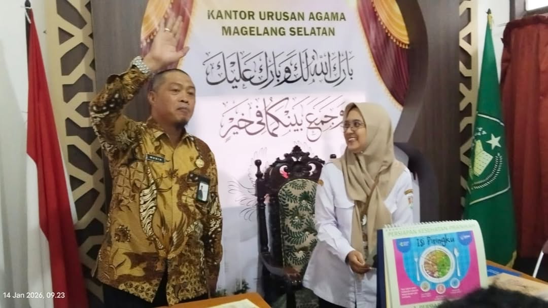Kota Magelang (Humas) – Kepala Kemenag melaksanakan monitoring dan evaluasi (monev) pelaksanaan kegiatan pembinaan kepada 12 pasangan calon pengantin (catin) di Kantor Urusan Agama (KUA) Kecamatan Magelang Selatan, Rabu (14/1/2026).