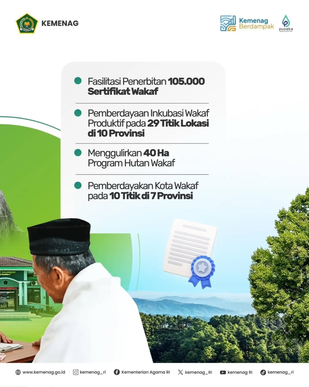 • Fasilitasi penerbitan 105.000 sertifikat Wakaf.