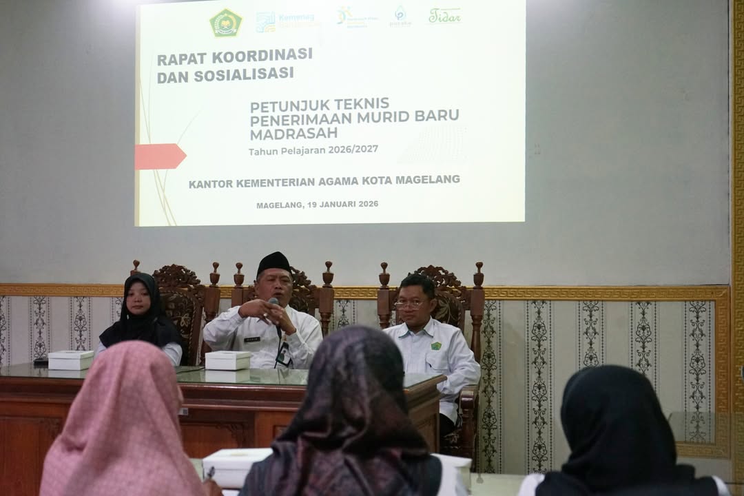 Kota Magelang (Humas) – Kementerian Agama menggelar Rapat Koordinasi dan Sosialisasi Petunjuk Teknis (Juknis) Penerimaan Murid Baru (PMB) Madrasah jenjang Raudlatul Athfal (RA). Kegiatan tersebut dilaksanakan di Aula Kantor, Senin (19/01/2026).
