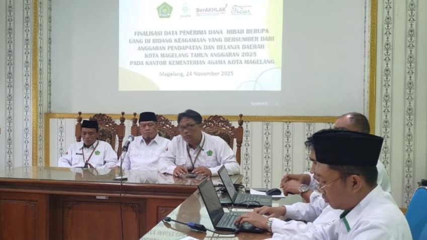 Kota Magelang (Humas) – Subbagian Tata Usaha (Subbag TU) Kantor Kemenenag Kota Magelang menggelar rapat koordinasi dalam rangka mempersiapkan penyaluran Dana Hibah Tenaga Keagamaan Tahun 2025 di aula, Senin (24/11/2025). Dana hibah tersebut bersumber dari Anggaran Pemerintah Kota Magelang Tahun Anggaran 2025, yang ditujukan untuk mendukung dan meningkatkan kesejahteraan para tenaga keagamaan di Kota Magelang.